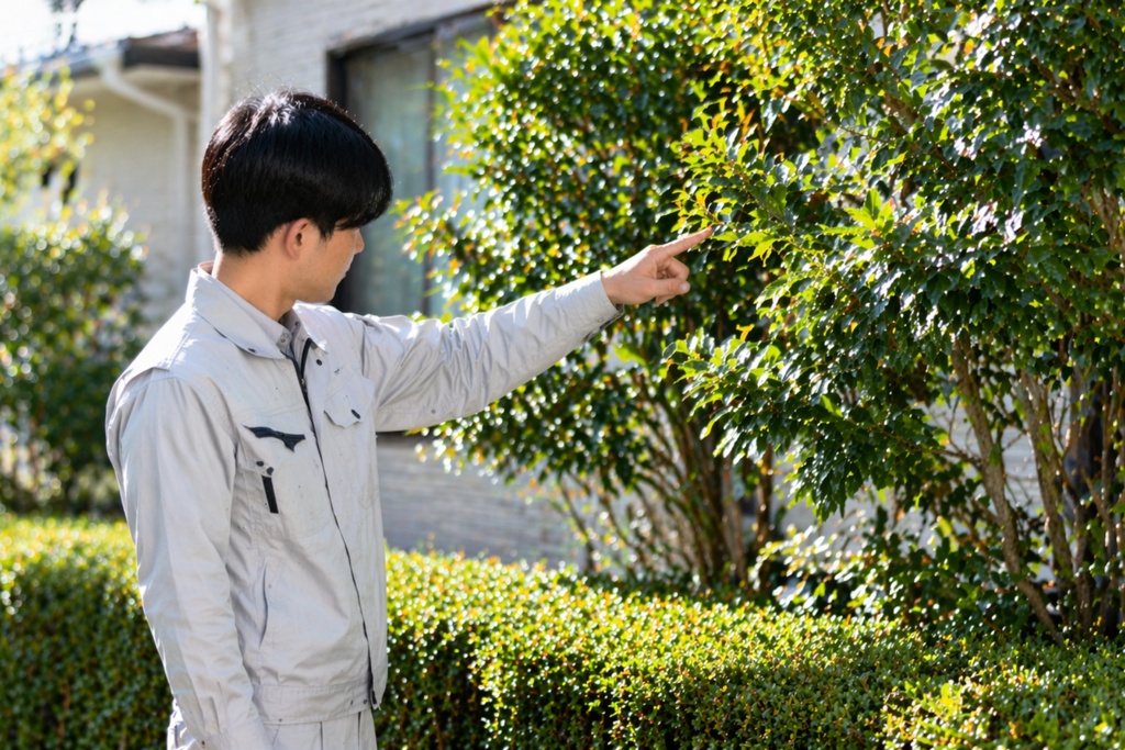 庭木枝の伸びすぎはないか?隣地への越境はないか?など確認いたします。※選定は別途お見積もりをさせていただきます。