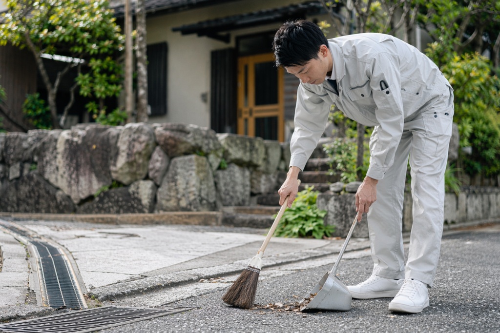 外回り簡単な掃き掃除/大きなごみの回収を行います。※あくまでも簡易のものとなります。