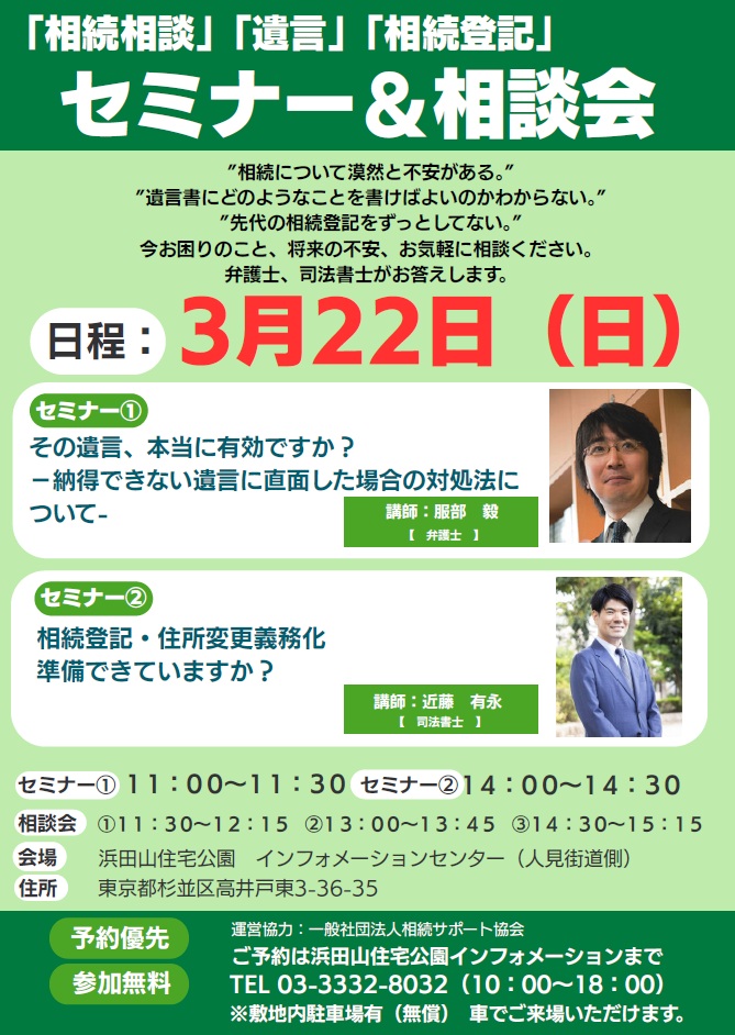 2026年3月20日「相続」「遺言」セミナー&相談会を